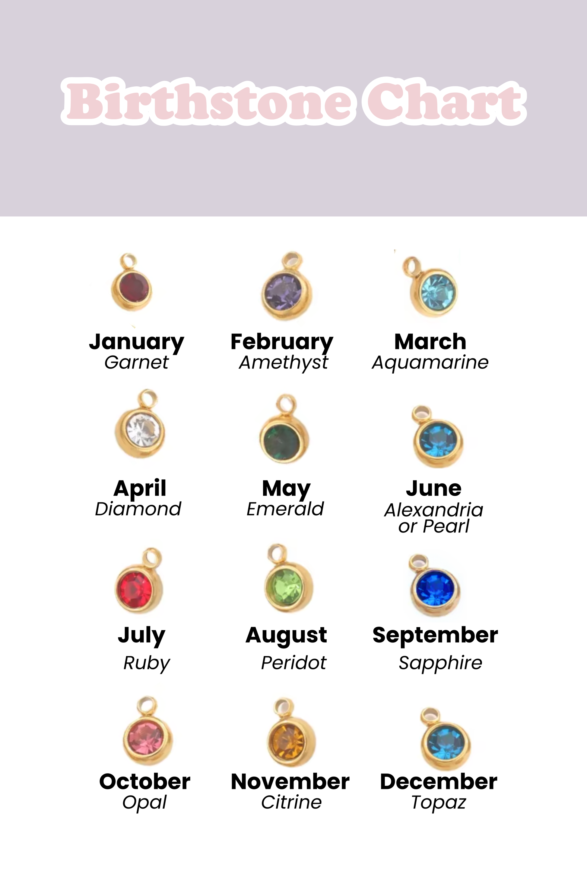 - IMPORTANT: At checkout, please write what birthstone charms you'd like in the "or